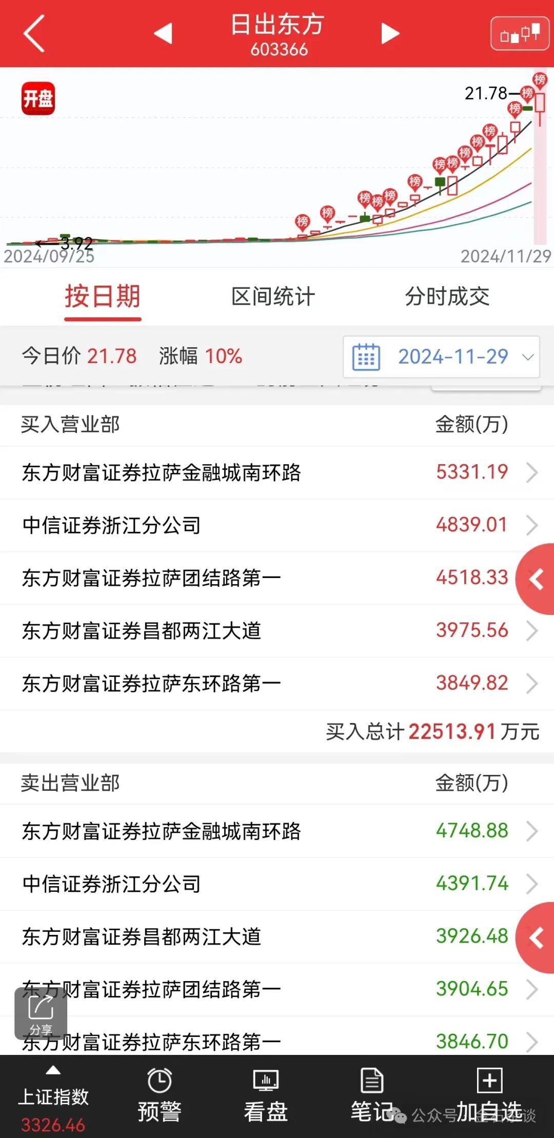 不过,虽然拉萨天团也有高光时刻,甚至能创造出10倍大妖股。但是从纯理性和基本面角度来说,日出东方风险大于收益:一是已经15板;二是有过炸板;三是散户的天下;四是被监管重点关注;五是公司高管配偶短线操作,高管被监管警示。