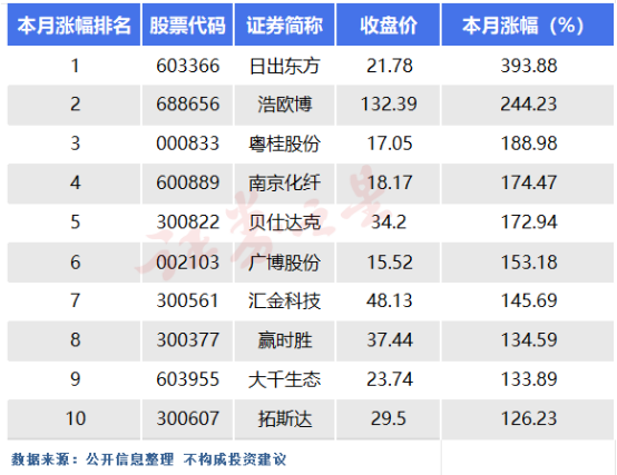 十一月沪深两市表现最为亮眼的个股,非日出东方莫属,该股恰好自11月初起涨,知道11月29日,该股仍收于涨停,月内总共收出15个涨停的同时,全月仅有一个交易日收跌,据了解,该股除了涉及华为概念、特斯拉概念等热门概念外,自身的名称“日出东方”也成为了其持续吸引关注的原因,而不少投资者在股票相关的论坛中,也表示是因为该股的名称而选择参院该股。