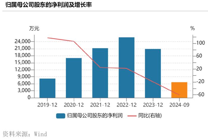 从业绩来看,该公司近两年净利润下滑明显。2023年该公司实现营业收入48.42亿元,同比增长24.24%;实现归母净利润2.09亿元,同比下降19.49%。