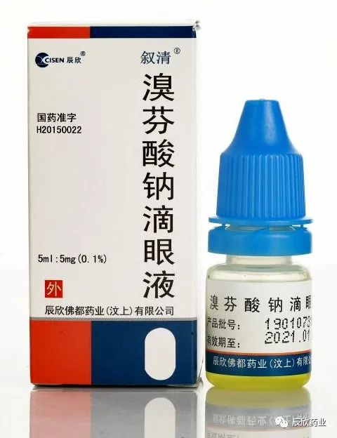 溴芬酸钠滴眼液是一种用于外眼部及前眼部的炎症性疾病的药物。目前临床上常用的抗炎药有糖皮质激素和非甾体类抗炎药两大类。糖皮质激素虽抗炎效果好,但易引起机体依赖性,短期内不可立即停药,长期用药又会导致出现白内障、眼内压升高、角膜上皮创口愈合迟缓等不良反应,故人们开始意识到非甾体类抗炎药在眼科疾病治疗中的优越性。作为新一代非甾体抗炎药,溴芬酸钠因其独特的化学结构,使其既是一种强效抗炎药,又是一种可渗透到眼部组织中的亲脂分子,从而增加作用的持续时间,抗炎、镇痛作用强效且安全。