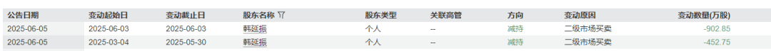 值得注意的是,这并非韩延振首次公开减持辰欣药业股份。数据显示,在2025年3月至2025年6月期间,韩延振已累计发起2次减持行为,累计减持数量达1355.6万股,占总股本比例约为3%。此外,2024年5月10日,北海辰昕创业投资有限公司完成减持452.78万股,占辰欣药业总股本比例为1%。而该公司正是韩延振一致行动人南京辰昕同泰创业投资有限公司的曾用名。