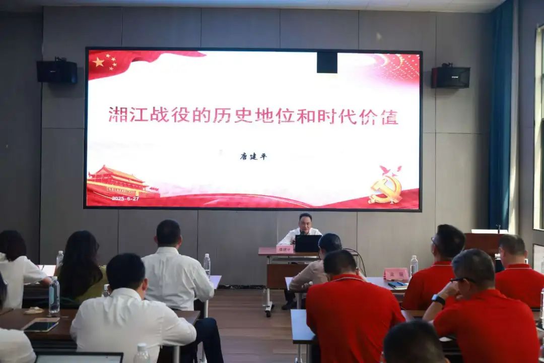 在专题党课环节,本次活动邀请到的是中共广西区委党校湘江战役教学基地主讲、中共桂林市委组织部干部培训专家组成员唐建平教授以《湘江战役的历史地位和时代价值》为题进行授课。授课中,唐教授深刻剖析了湘江战役的历史意义,讲述战役中革命先烈的英勇事迹,充分诠释湘江战役勇于突破,勇于牺牲,勇于胜利的精神,广大党员干部获益匪浅。主题党课后团队现学合唱歌曲《祖国不会忘记》表达对为祖国无私奉献的英雄的敬意以及为祖国健康事业拼搏奉献的决心和誓言。