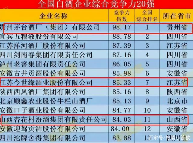 导语:全国白酒20强排名,剑南春在第4!汾酒在第11,竟干不过今世缘?