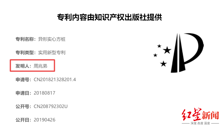 红星资本局检索国家专利查询发现,这种桩型为浙江兆弟桩业有限公司及其实控人周兆弟的独家专利,其他企业均无法生产,具有排他性,而中标方也确为兆弟桩业。