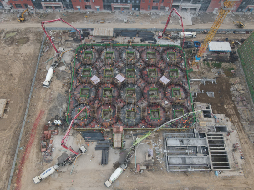 2023年5月17日5:58,中建三局今世缘酒厂项目A1粮食立筒仓正式开始滑模浇筑施工。