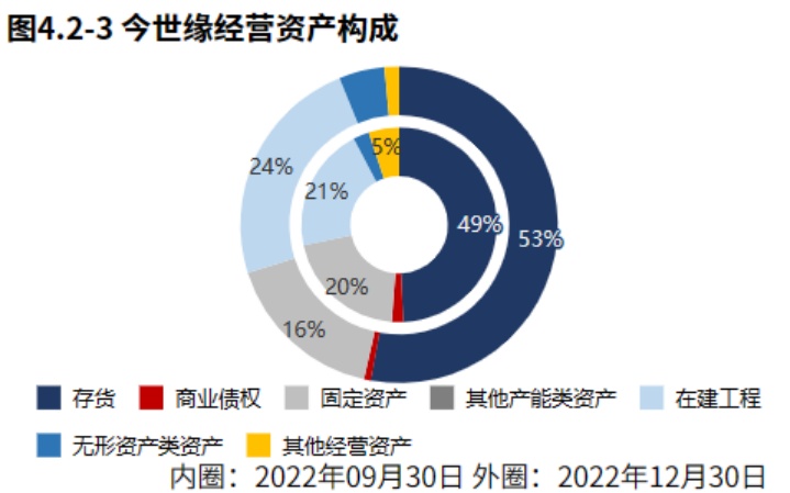 从2022年6月30日的经营资产结构来看,存货占比53%,在建工程占比24%,固定资产占比16%。