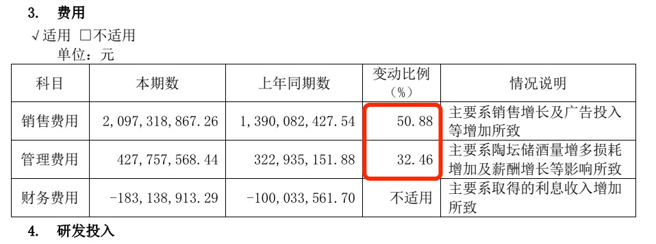 年报解释,前者主要系销售增长及广告投入等增加所致,后者主要系陶坛储酒量增多损耗增加及薪酬增长等影响所致。