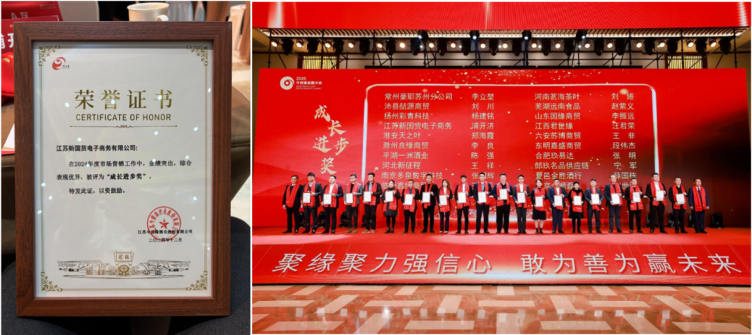 12月29日,在2025年今世缘发展大会上,江苏有线新国货公司以2024年度突出的酒水销售业绩以及优异的综合表现,荣获“成长进步奖”。