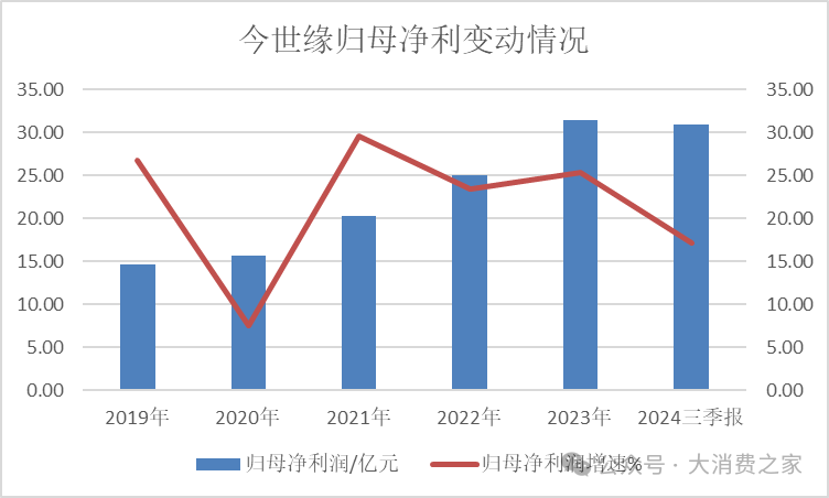 同样,在2019-2023年期间,今世缘的归母净利润呈现出提升的态势,具体数值分别为14.58亿元、15.67亿元、20.29亿元、25.03亿元和31.36亿元。然而,到了2024年前三季度,归母净利润为30.86亿元,同比增长17.08%,相比于2021至2023年期间超过20%的增长速度,也出现了一定的放缓。