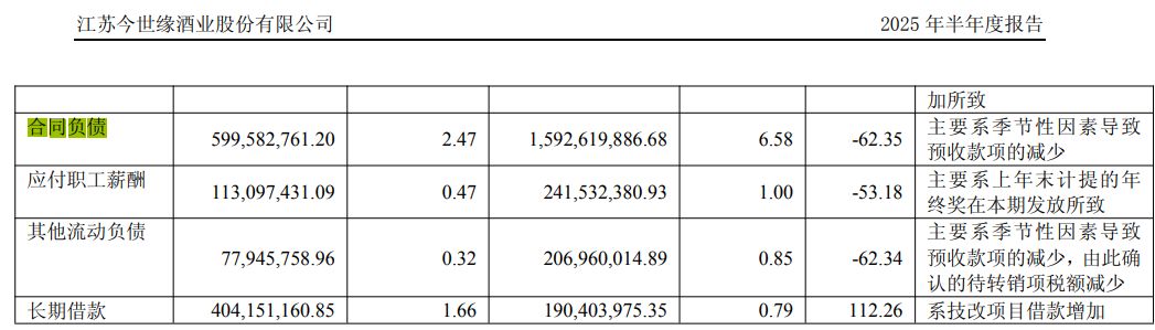 另外值得注意的是,今年上半年,今世缘的合同负债约为6亿元,同比减少62.35%。虽然公司称主要系季节性因素导致预收款项的减少,但这也从侧面反映出经销商打款意愿可能有所降低,市场对其产品的预期较为保守。