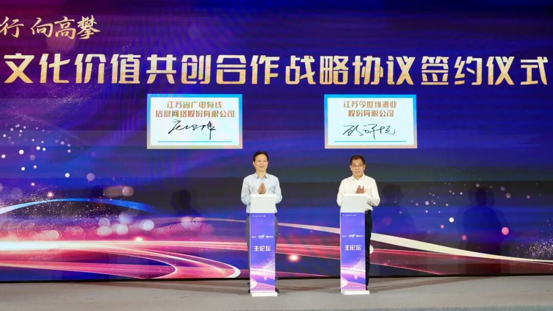 9月26日,2025长三角高新视听博览会在南京国际展览中心开幕,其间,江苏省广电有线信息网络股份有限公司(股票代码:600959.SH,以下简称:江苏有线)与江苏今世缘酒业股份有限公司(股票代码:603369.SH,以下简称:今世缘)签署文化价值共创合作战略协议。作为各自领域的领军企业,江苏有线是省属大型国有文化与科技上市公司,连续16年入选“全国文化企业30强”,连续5年登榜“中国500最具价值品牌”,依托“屏报网微端”媒立方平台构建了覆盖全省超千万家庭用户的数字化生态。今世缘酒业以“缘”文化为品牌内核打造了超百亿的白酒产业版图,成为穿越行业周期的“苏酒样本”,正从“区域龙头”向“全国标杆”加速跃迁。