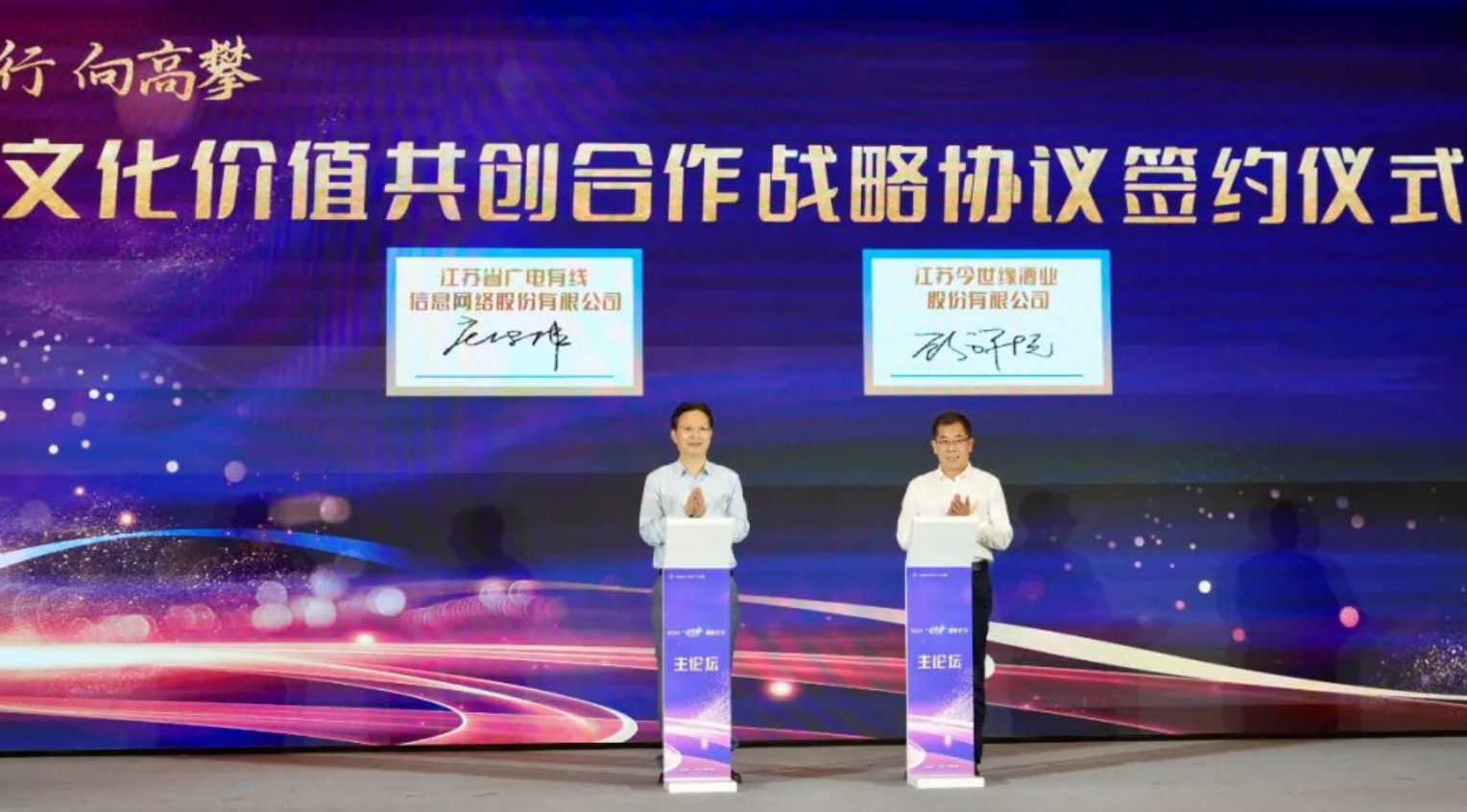 9月26日,在2025长三角高新视听博览会上,江苏有线与今世缘签署文化价值共创合作战略协议。双方将紧抓国货消费升级机遇,通过数字化技术赋能传统酒业,重点开发“苏超”系列文创产品,打造低度酒、文化酒等新消费爆款,进一步做大细分市场销售规模。江苏有线相关负责人介绍,接下来公司将与今世缘创新探索“文化场景”与“微醺体验”的有机融合,通过“科技+文化+消费”三维创新,推动饮酒场景实现三大跃迁,从商务宴饮到日常轻社交,从单一品鉴到多维体验,从功能消费到情感共鸣。
