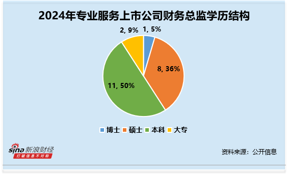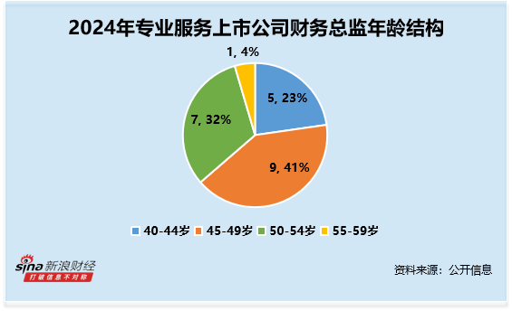 从年龄结构来看,财务总监CFO的年龄平均数约为48.23岁,其中45-49岁最多,人数共9人,占比约41%。其中,年龄最大的为国缆检测褚晓平,年龄为55岁,大专学历,2024年薪酬为61万元;年龄最小的为科锐国际尤婷婷,年龄为40岁,2024年薪酬为101.40万元。