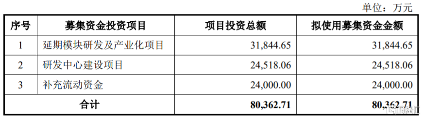 本次IPO所募集的资金主要用于延期模块研发及产业化项目、研发中心建设项目、补充流动资金。