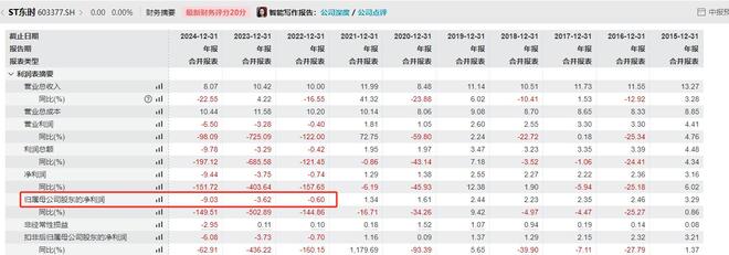企业经营方面,近年来,ST东时业绩持续承压。2022年至2024年,公司归属于上市公司股东的净利润连续三年亏损。