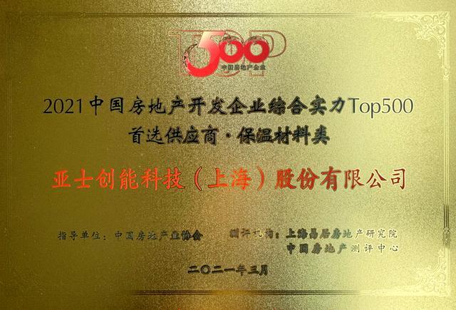 亚士创能已累计与全国109家大型房地产开发商达成战略合作及集采,其中8家为 2020 年中国房地产企业TOP10,并先后荣获“万科地产 A 级供应商”、“中南地产最佳品质奖”、“富力地产最佳合作伙伴”、“宝龙地产优秀合作伙伴”等荣誉。