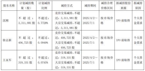 因个人资金需求,上述董事、高级管理人员拟通过上海证券交易所交易系统以集中竞价、大宗交易的方式减持公司股份不超过4,038,037股,减持不超过公司股份总数的0.9422%,且分别不超过个人各自持股总数的25%。并在减持计划披露之日起15个交易日后的3个月内进行,减持价格按照减持实施时的市场价格确定。