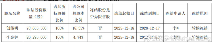 记者查阅公告细节发现,截至1月26日公告披露日,润合同彩合计持有亚士创能2712.55万股股份,占公司总股本的6.33%,且其全部持股已转入华泰证券客户信用交易担保证券账户,这意味着该主体所持股份已无额外质押或变现空间,此次被动减持一旦启动,将直接兑现股权流动性风险。值得注意的是,这并非亚士创能近期首次暴露股权问题,早在2025年12月22日,公司便披露控股股东上海创能明投资有限公司及实控人李金钟合计持有的9895.05万股股份被轮候冻结,占公司总股本的23.09%,而冻结原因与员工持股计划的兜底纠纷直接相关。