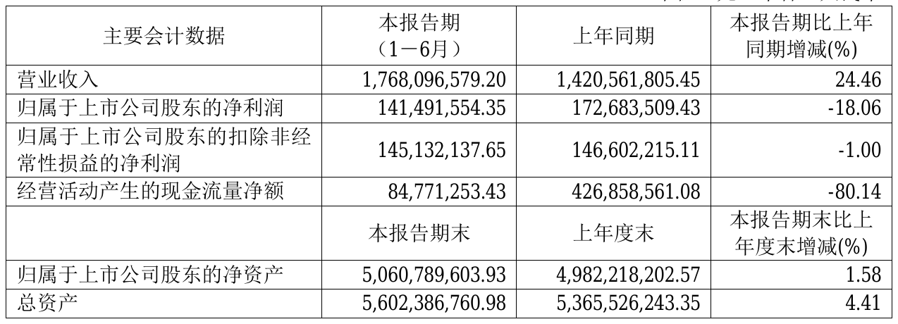8月26日,三美股份(603379)近日发布2021年半年度报告,报告期内营业收入1,768,096,579.20元,同比增加24.46%;净利141,491,554.35元,同比净利减少18.06%。