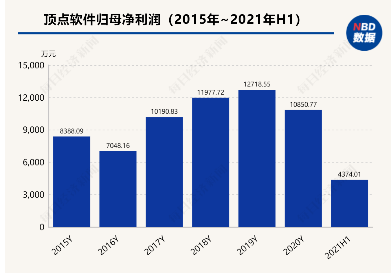 2017年度至2020年度,顶点软件分别实现归属于上市公司股东的净利润约1亿元、1.2亿元、1.3亿元和1.1亿元。