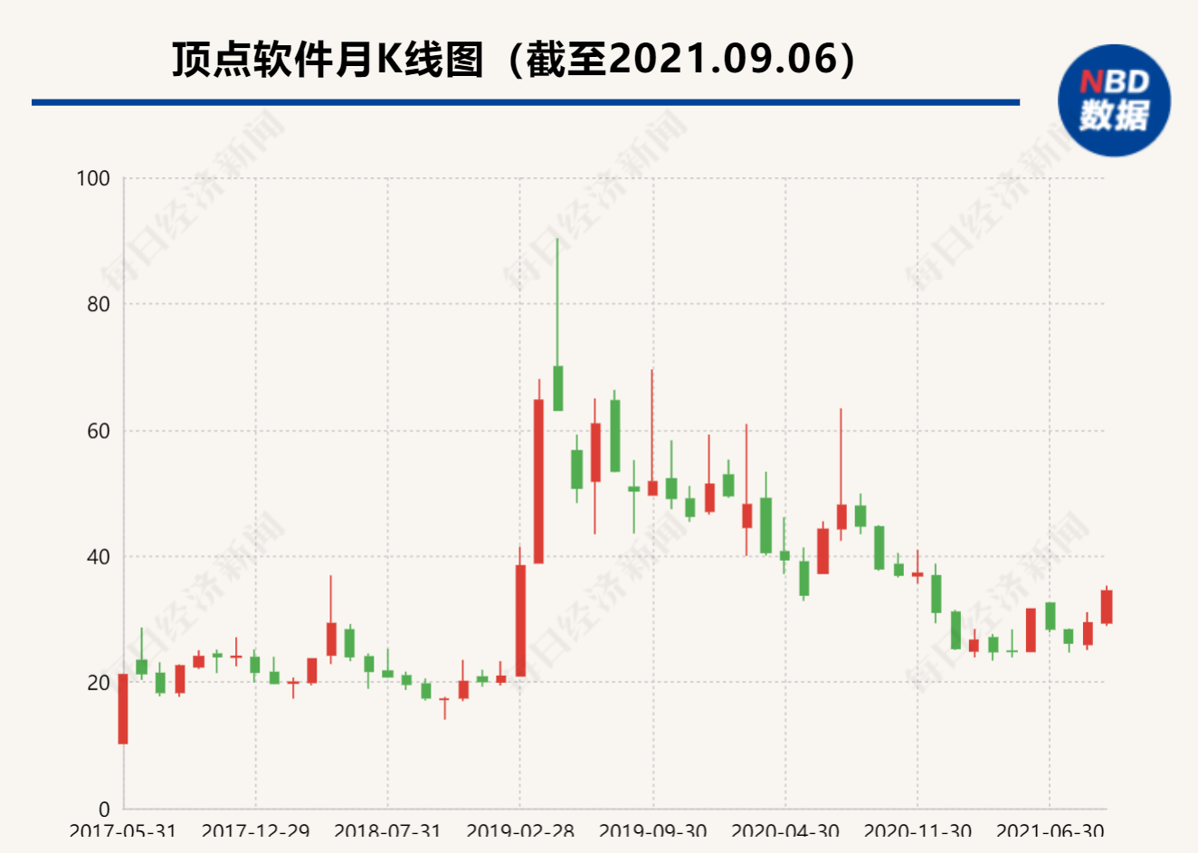 值得注意的是,从2019年以来,顶点软件的重要股东和高管对公司股票的买卖操作均为减持。数据显示,5位高管累计减持套现的市值约9000万元。