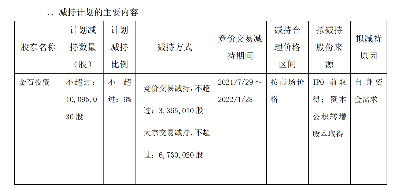 随后,从去年9月开始,金石投资IPO前获得的股票满36个月解禁之后,金石投资也开始减持。