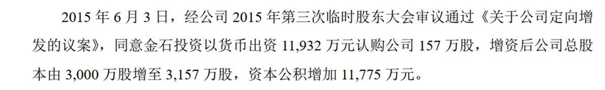 也就在金石投资入股顶点软件后不到一个月的时间,2015年6月19日,顶点软件向全体股东每10股转增了10股,金石投资所持有的657万股也因此变成了1314万股。这个持股数也一直维持到了顶点软件发行前。