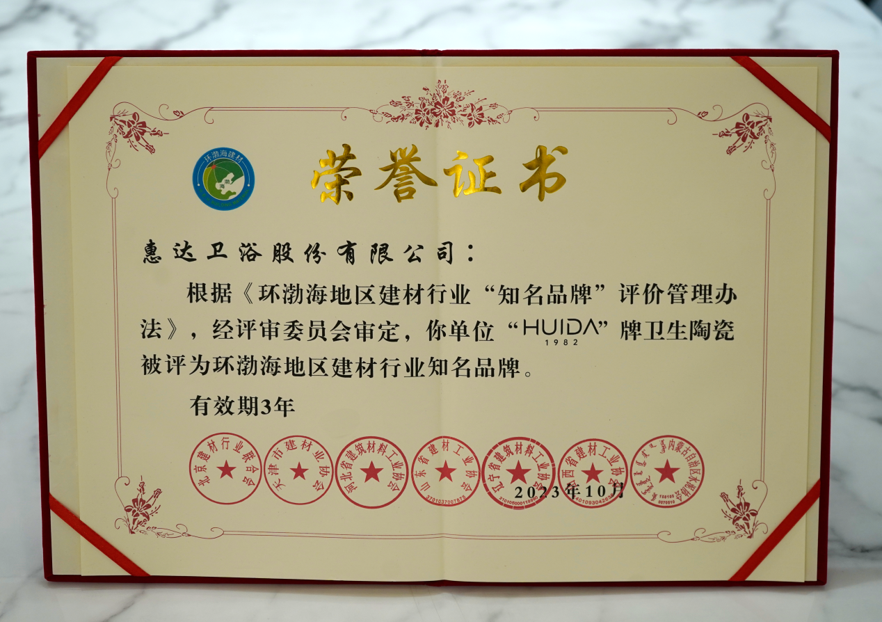 图:惠达卫浴荣获2023年环渤海地区建材行业知名品牌