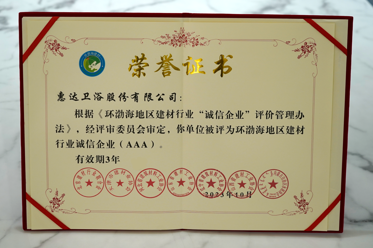 此次荣获的四项荣誉不仅是对惠达卫浴在环渤海地区的影响力和竞争力的充分肯定,更是对其多年来坚持创新、追求卓越的最好回报。其中,“诚信企业”荣誉是对惠达卫浴在商业道德、社会责任等方面的积极践行和表率作用的认可,41年来,惠达卫浴坚持诚信经营,以诚信立身兴业,构建诚信体系成果得到社会各界的好评。曾荣获“河北示范企业”“AAA级诚信企业”等多项殊荣。