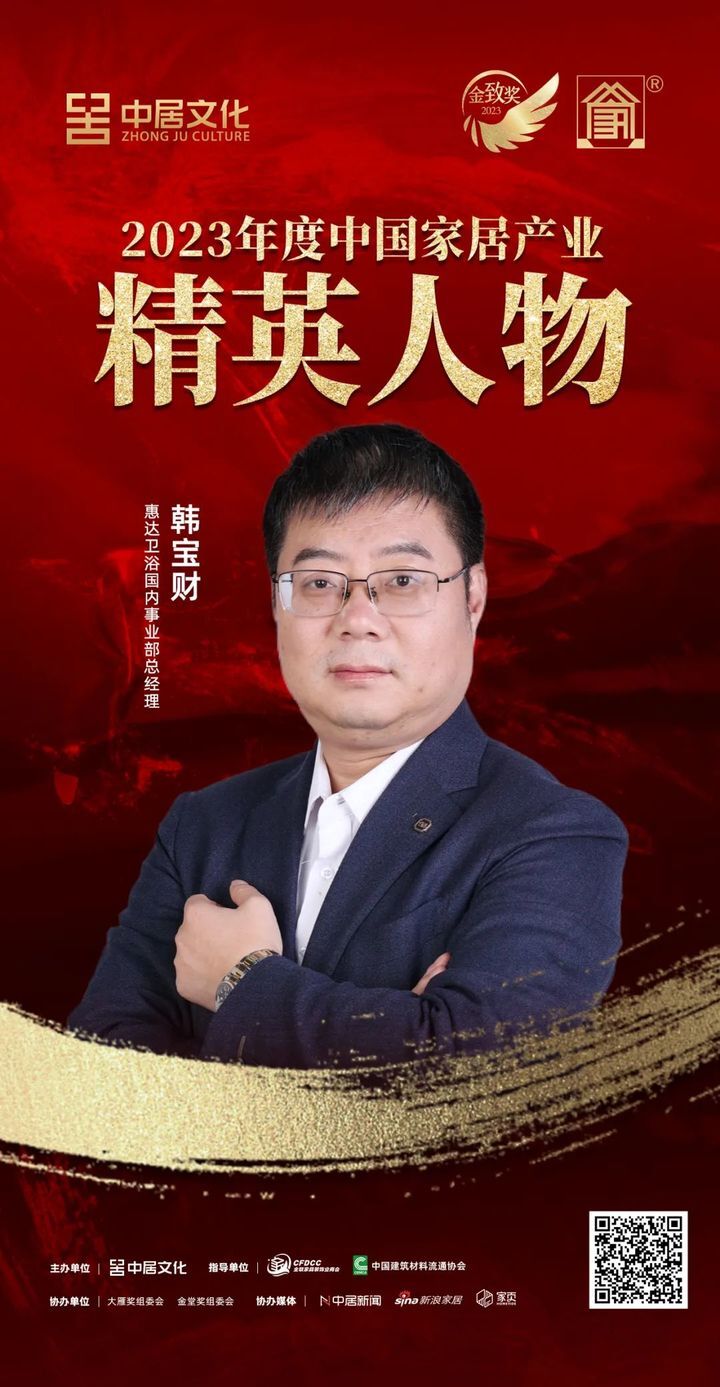 在“2023年度中国家居产业精英人物”的评选中过程中,惠达卫浴国内事业部总经理韩宝财在行业营销力、创新力、影响力三个维度的评比中脱颖而出,成功斩获此项荣誉。2023年,在韩宝财的带领下,惠达卫浴国内事业部攻艰克难,再创佳绩,交出了一份高质量答卷。