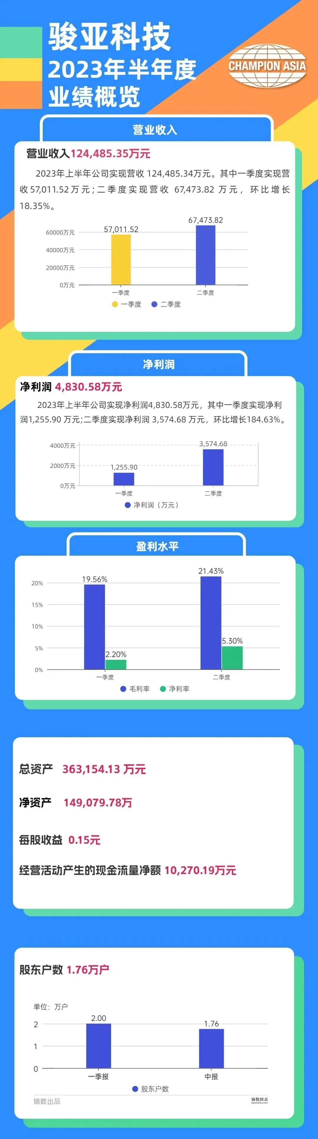 骏亚科技(SH 603386)8月30日发布半年度业绩报告称,2023年上半年营业收入约12.45亿元,同比减少5.62%;归属于上市公司股东的净利润约4831万元,同比减少34.59%;基本每股收益0.15元,同比减少51.61%。