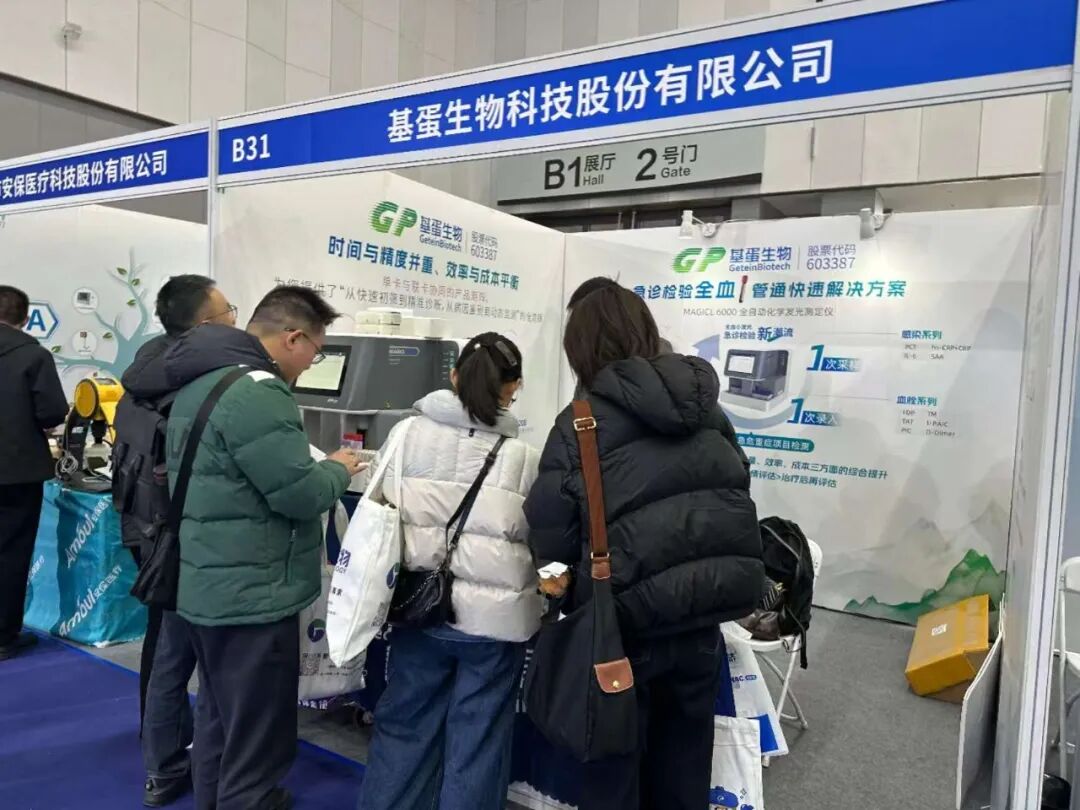 急诊检测技术的创新与应用作为本次会议的重要关注焦点,基蛋生物携其面向急诊检验需求的创新产品与解决方案亮相本次盛会。MAGICL6000全自动化学发光测定仪及Getein1150荧光免疫定量分析仪这两款针对急诊场景优化设计的检测设备及相应的整体解决方案吸引了众多与会专家与代表的关注。