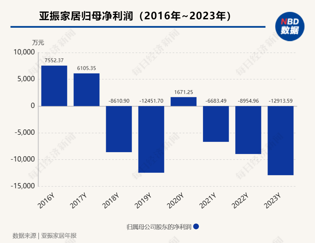 事实上,近年来亚振家居的业绩呈现持续下滑趋势。