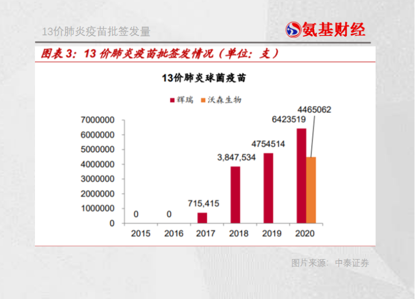 2020年,辉瑞的13价肺炎疫苗批签发642万支,沃森生物的13价肺炎疫苗开始上市放量、全年批签发447万支,合计批签发1089万支。