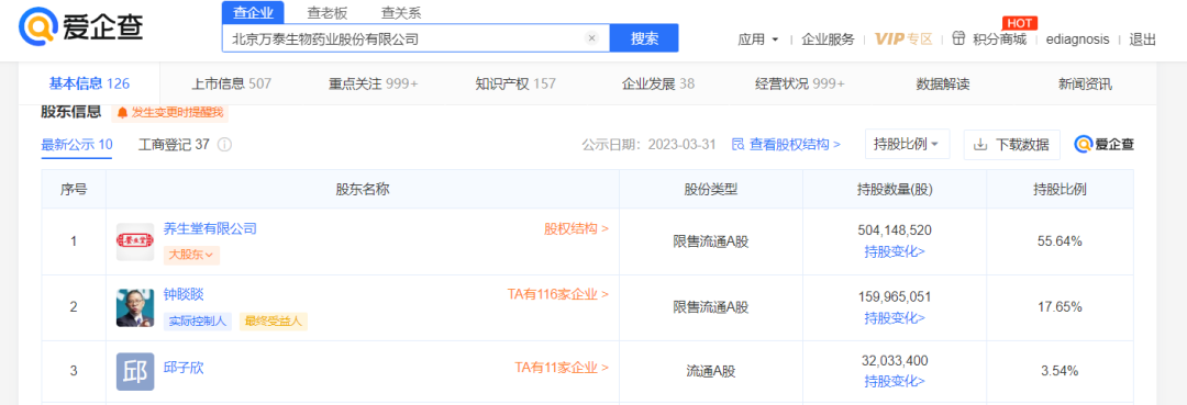 钟睒睒不仅是农夫山泉和养生堂的董事长,也是万泰生物(主营IVD+疫苗)的实控人。