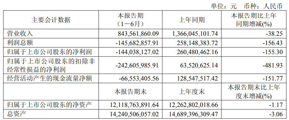 今年上半年,万泰生物实现营业收入8.44亿元,同比减少38.25%;归属上市公司股东的净利润-1.44亿元,同比减少155.30%,上年同期为2.60亿元;归属于上市公司股东的扣非净利润-2.43亿元,同比减少481.93%,上年同期为6352.06万元;经营活动产生的现金流量净额为-6655.34万元,上年同期为1.29亿元。