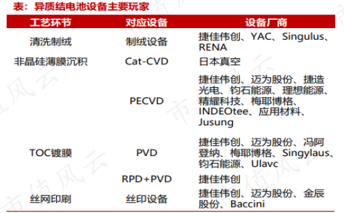 市场空间广阔,吸引了光伏设备制造行业内龙头企业们的布局。其中,包括光伏丝网印刷设备龙头迈为股份(300751.SZ)、光伏电池设备龙头捷佳伟创(300724.SZ)和钧石(中国)能源有限公司。