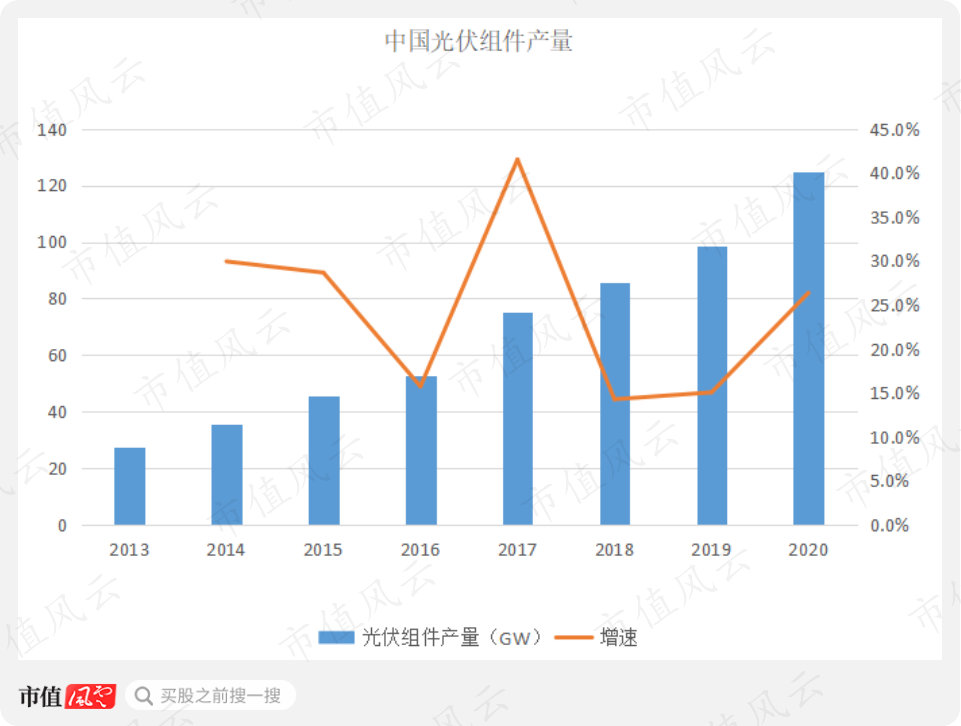 随着光伏产业快速发展,新增装机容量不断增加,光伏组件产量也快速增长,五年复合年化增速约为22%。