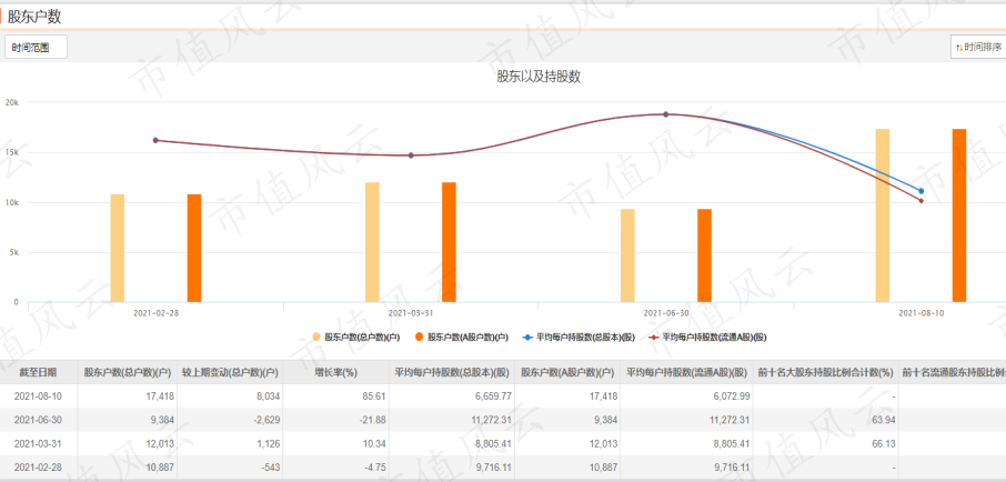 与此同时,截至2021年6月30日,公司股东数量从1.2万户减少至0.9万户。