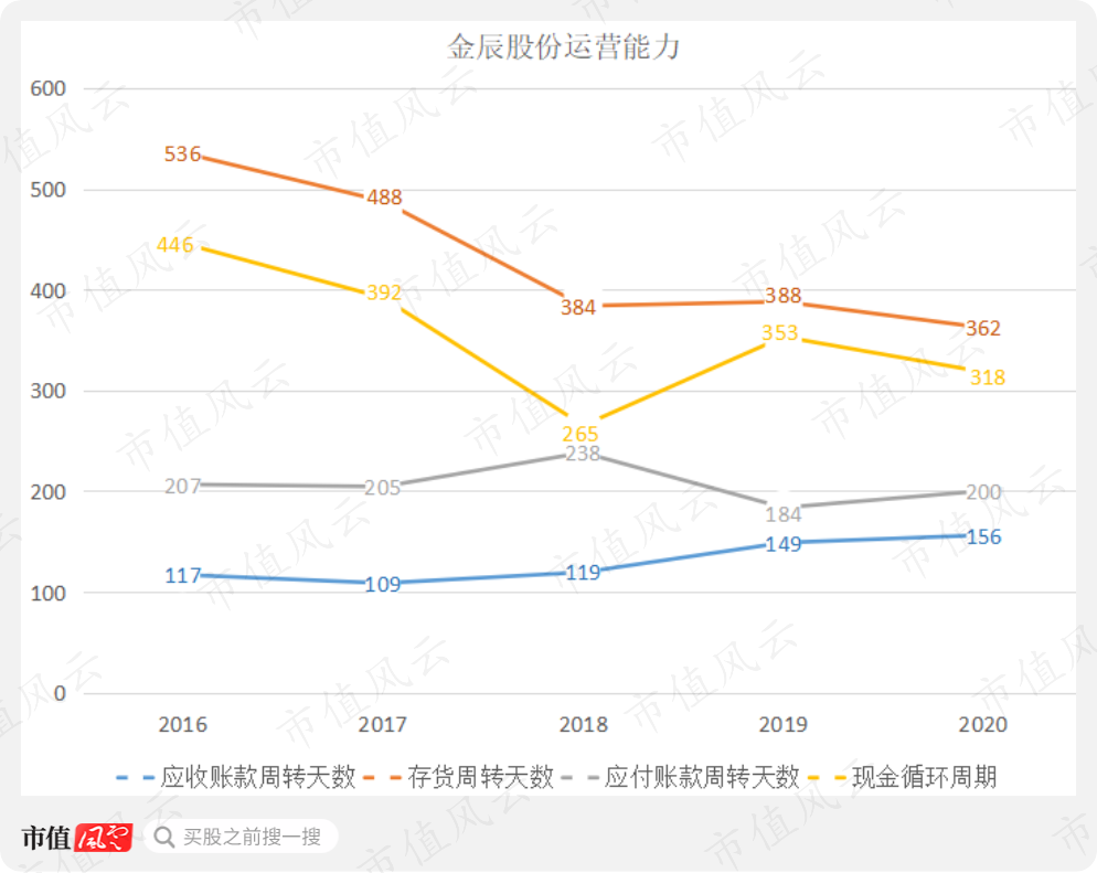 2020年,公司的存货周转天数高达362天,现金循环周期为318天。