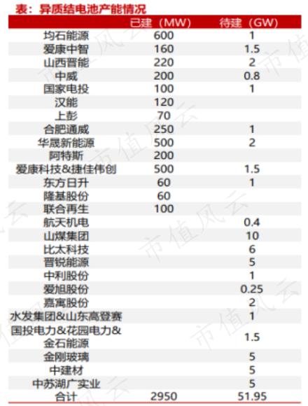目前HJT电池片国内已建产能约2950MW,未来待建产能约52GW。