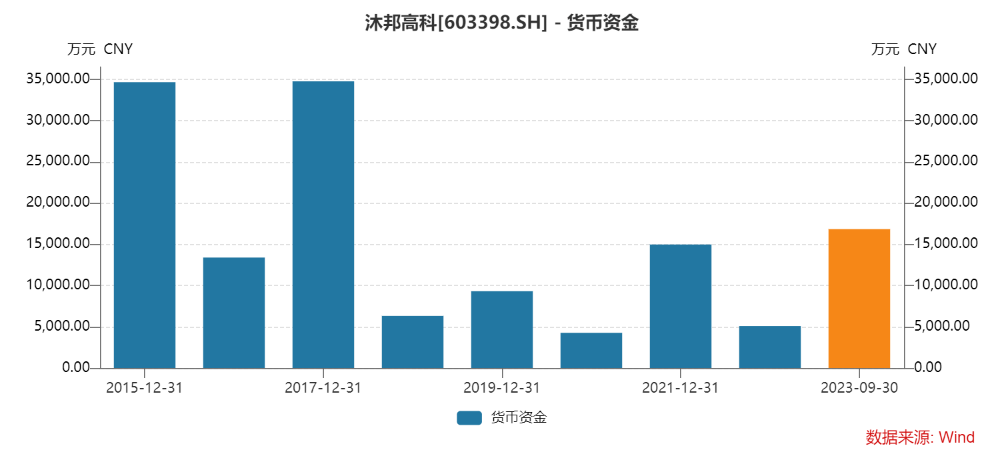 值得注意的是,2023年第三季度末,沐邦高科的公司货币资金余额仅为1.68亿元(未经审计)。