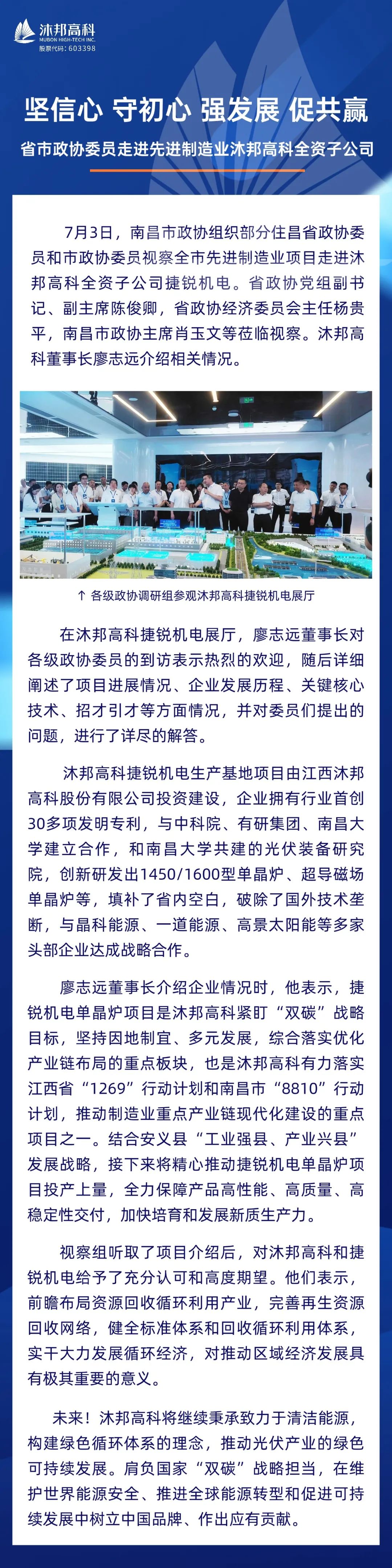 推动高质量发展 | 江西省市政协委员走进先进制造业沐邦高科全资子公司