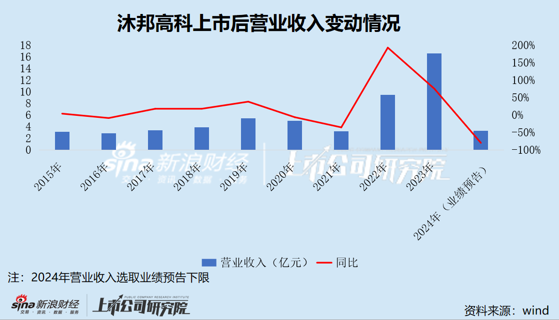 沐邦高科也未能幸免。业绩预告显示,公司2024年预计实现营业收入3.3亿元到3.5亿元,实现归母净利润-5.2亿元到-4.2亿元,实现扣非后归母净利润-14.4亿元到-11.7亿元,创下上市以来的最大亏损。