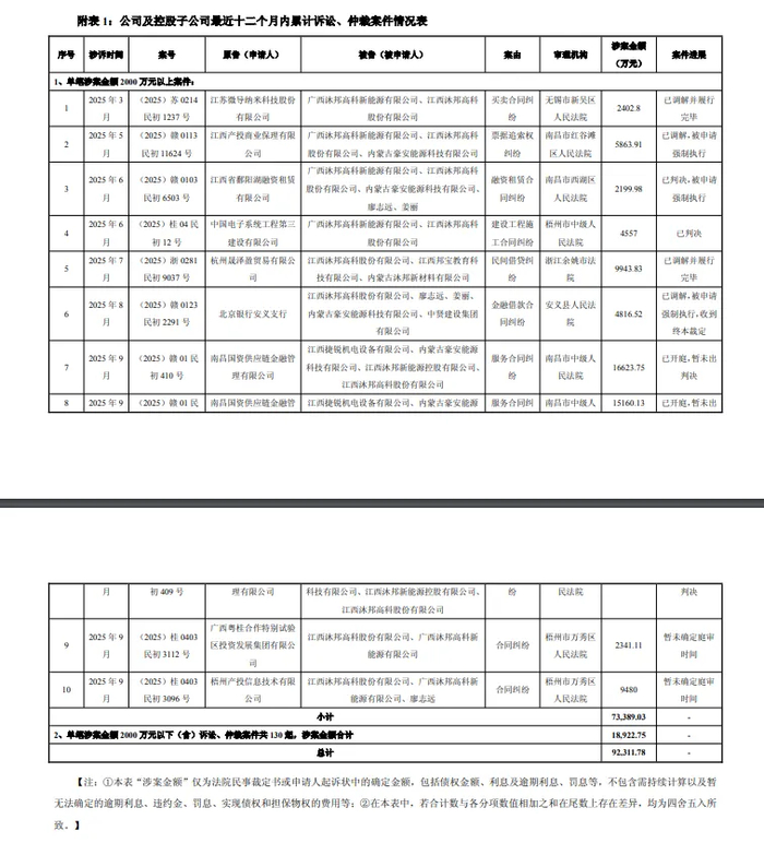 但梧州项目投产仅6个月后,市场上就传出停产、欠薪的消息。此后,沐邦拖欠供应商货款、被起诉、财报爆雷、股票实施退市风险警示、募资账户被司法划扣的负面不断,直至被债权人申请予重组。