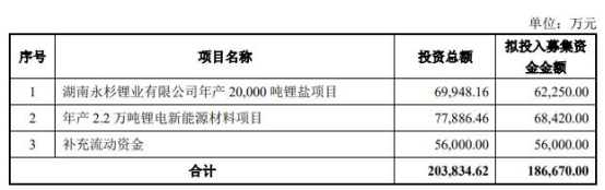 昨日晚间,吉翔股份发布2022年度非公开发行A股股票预案。本次非公开发行A股股票拟募集资金总额不超过18.67亿元(含本数),扣除相关发行费用后的募集资金净额将用于湖南永杉锂业有限公司年产20000吨锂盐项目、年产2.2万吨锂电新能源材料项目、补充流动资金。