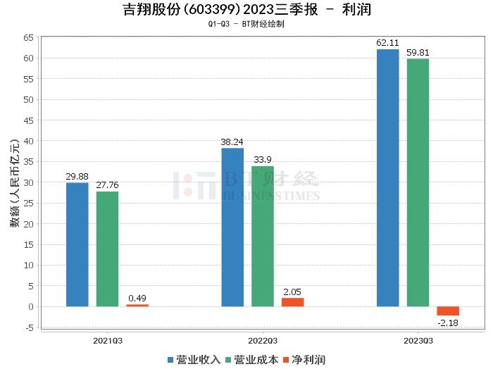 在利润方面,吉翔股份2023年三季度的营业收入为62.11亿元,较上年同期的38.24亿元增长显著。然而,由于锂盐产品价格大幅下跌,营业利润为-2.55亿元,较上年同期的2.46亿元下降明显。净利润为-2.18亿元,较上年同期的2.05亿元也有较大幅度下降。毛利率为3.71%,较上年同期的11.36%有所下降。净利率为-3.5%,较上年同期的5.36%也有所下降。
