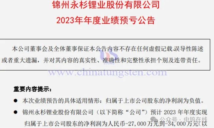 (2)2023年受新能源车市场增速放缓,上游资源供给产能释放,锂盐价格一路下跌,行业整体低迷。永杉锂业积极采取举措,努力通过加速出货、增加加工业务占比、择机采购锂矿等方法降低市场下行带来的各项风险。其中,一季度锂盐板块实现盈利。自二季度以来,锂盐市场竞争加剧,销售量少于年初预期,同时产品单价快速下跌致使产品毛利率偏低,迭加存货跌价损失的影响,导致全年锂盐板块业务亏损;报告期内,锂业板块预计实现归属于母公司的净利润为-12,000万元到-16,000万元。