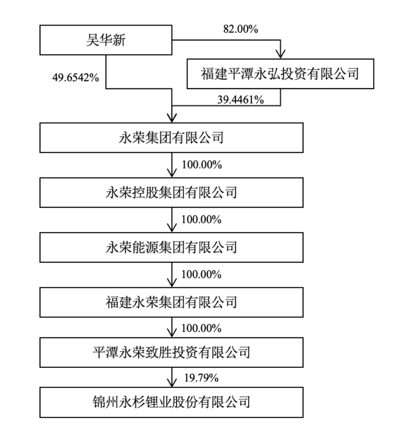 永荣控股对永杉锂业的控股路径来源/永杉锂业公告