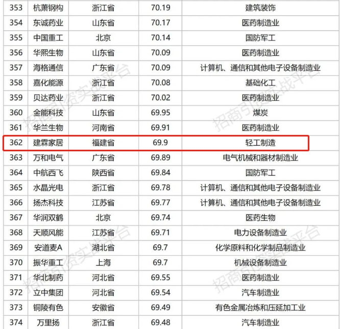 近日,在第七届中国制造业上市公司价值500强大会暨高端医疗器械与健康产业数字化创新日活动上,发布了《2021年度中国制造业上市公司价值500强榜单》,建霖家居位列榜单第362位,居福建省第15位,厦门市第7位。